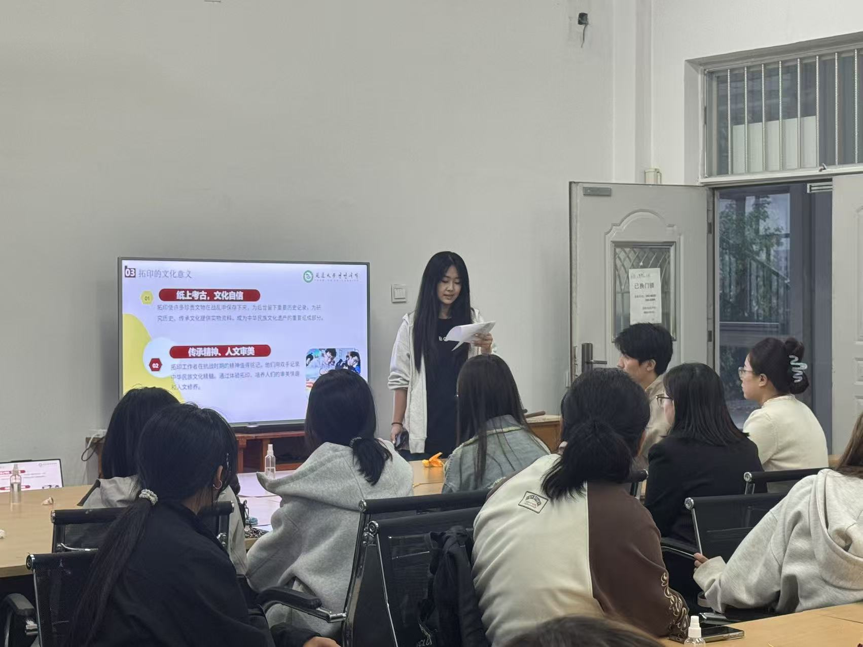 9月20日,美术学院一站式学生社区在吉林省民间工艺体验室举办“抗战烽火中的文化守护者”非遗拓印体验活动。本次活动由2024级美术学专业的付佳宁同学主讲。
