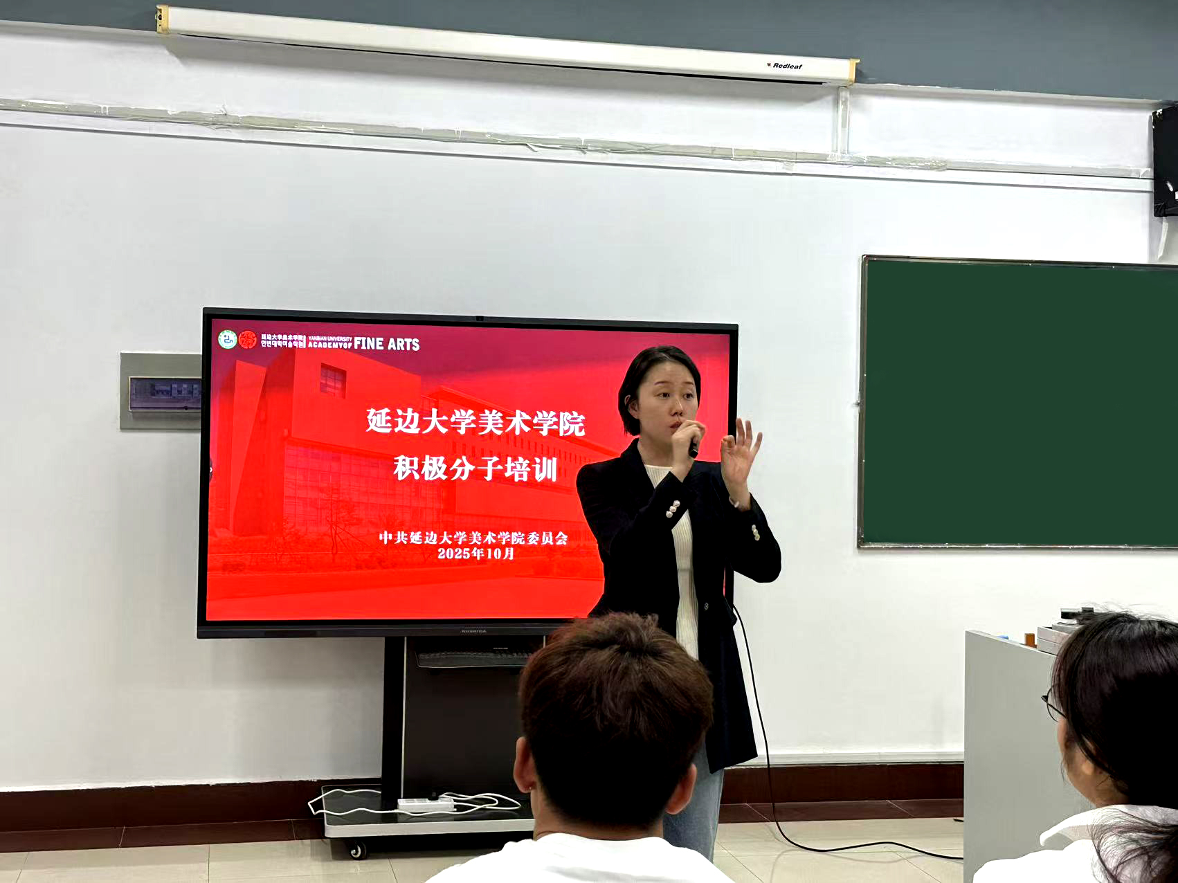 日前,延边大学美术学院举行了2025年度入党积极分子集中培训班专题讲座第三讲。美术学院学生党支部书记金艺花担任主讲人,主题为《坚定理想信念,践行红色初心》。