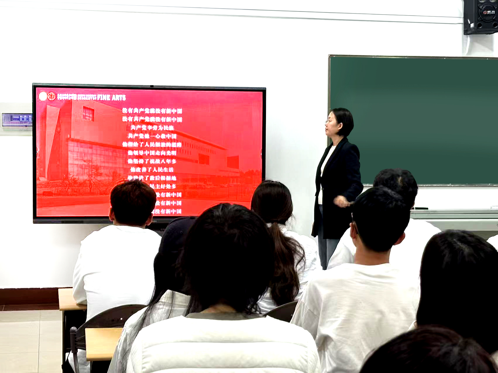 讲座中,金艺花以鲜活的理论叙事与深厚的实践功底,将音乐与党课深度融合,通过解析《没有共产党就没有新中国》的历史背景,系统梳理了中国共产党成立后带领人民开展土地革命、抗击日本侵略者的历史脉络。之后,金艺花带领学员观看九三阅兵仪式上,合唱团成员演唱时的赤诚神态,从而为学员们传授知识,传递爱党爱国的精神内核。她指出,该歌曲清晰展现了中国共产党引领人民摆脱苦难、走向光明的历史必然。随后,师生合唱该歌曲,进一步深化了学员对党的领导与民族发展关系的认知。