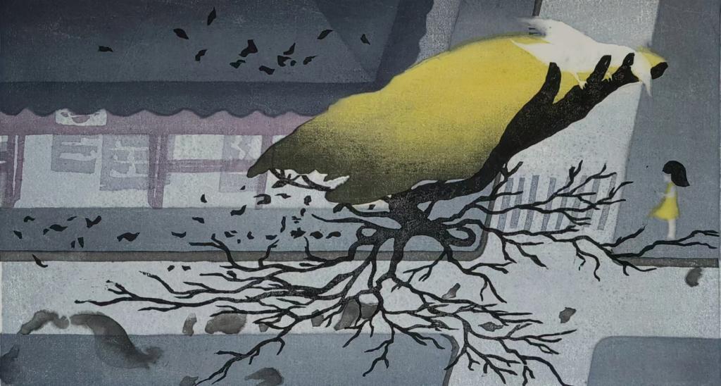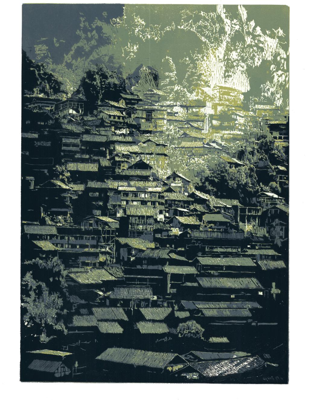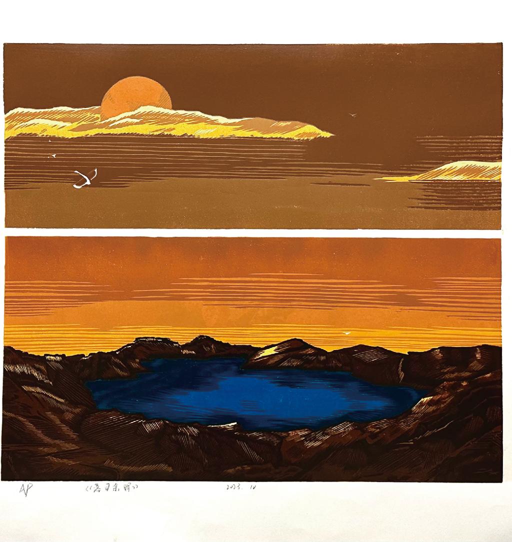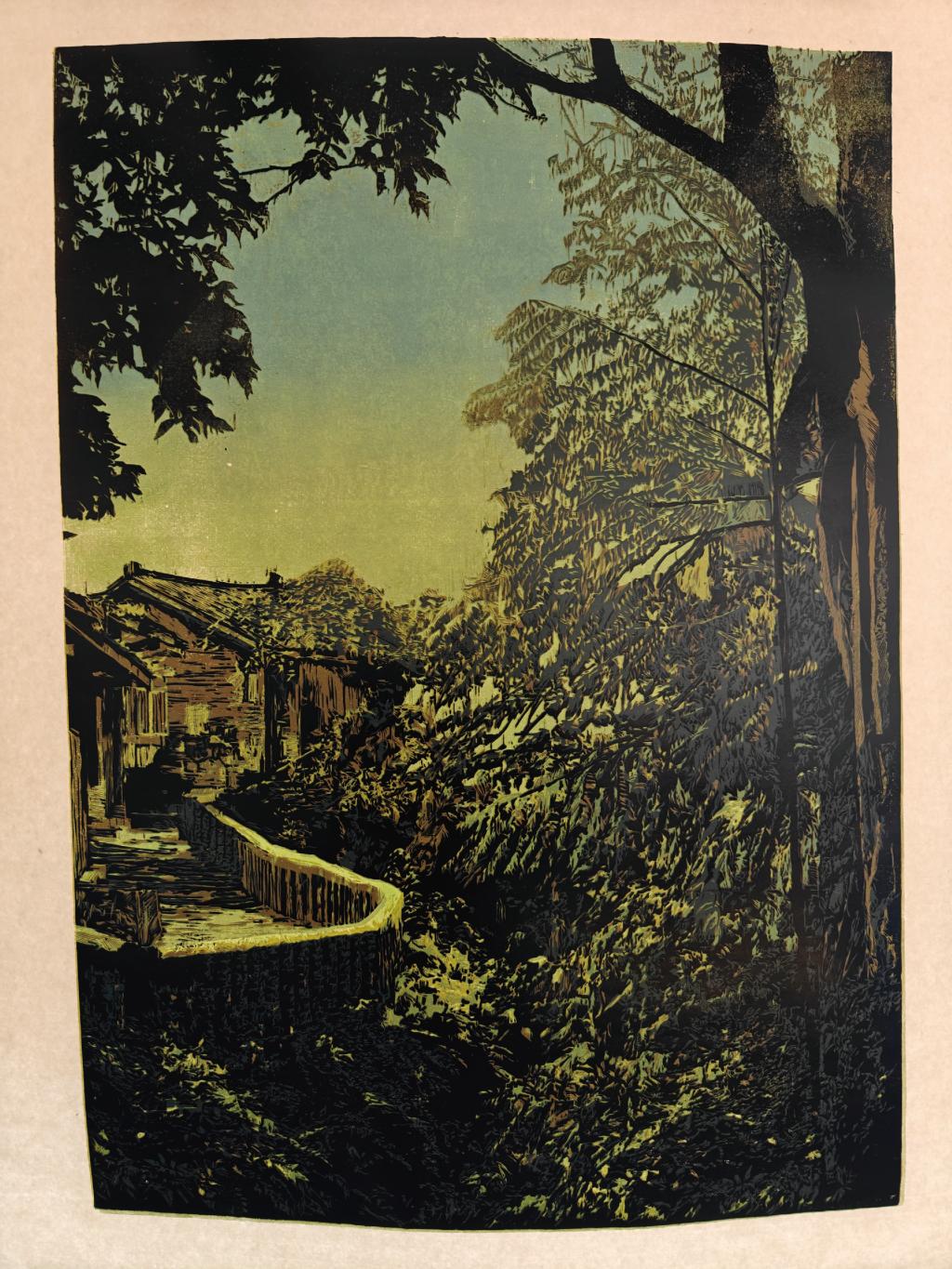 作品名称:《落日余晖》 尺寸类型:60×85cm 版画 作者:李明月 指导教师:朱昌森 |